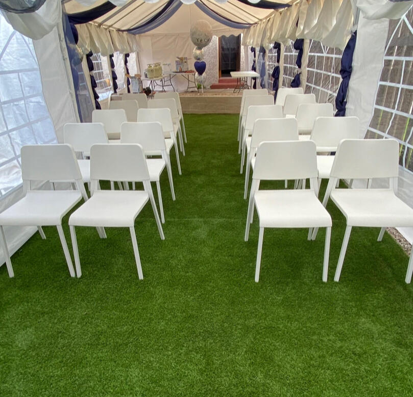 The adult party chairs are comfortable yet sturdy.Available colours - whiteIndoor & outdoor use
